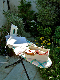 Yes, this was where I was to be found this morning - ironing in the garden! Well the weather was far too nice to be stuck indoors....